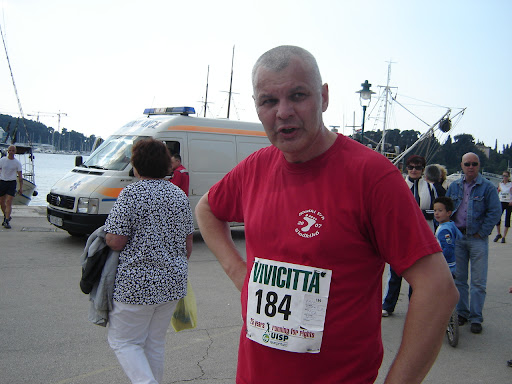 Tisti na daljši progi so imeli kar težave , mi ki smo tekli krajšo pot pa ne, celo okrepčevalnico smo imeli na 2 in 4 km. Sama tekma se je pričela brez kakršnegakoli opozorila na start in tako smo se zapodili med mize in stole, je na začetku po rivi šlo kar na tesno. Sam sem pričel teči kar popolnoma sproščeno saj sem na dopustu mar ne? Čudno se mi je edino zdelo, da je bil Bober samo nekaj m pred mano, no pa saj mi je potem hitro pobegnil. Svoj tempo sem kar lepo vzdrževal, prehiteval sotekmovalce, kar ti da kar nekak elan za naprej, v drugi polovici proge pa mi je non-stop pihal za ovratnik domačin, katerega sem na obratu prehitel. Praktično mi ni dal dihati skorajda do cilja, no v ciljnem sprintu sem ga lepo pustil od zadaj. In potem pogled na uro pol minute manj kot 30 minut. Ma sem si rekel, to sigurno ni 6 km nemogoče. Pa sem vprašal prireditelja pa mi je rekel, da je točno izmerjeno in da je proga v resnici dolga 6km, kar mi je potrdil tudi Bobr ko je prišel na cilj.