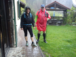 Nato pa Gaube. Kmetija Gaube je vedno zgodba zase. Vedno dobrodošli, vedno nasmejani in prisrčni. Tokrat nismo naročili gibanice, ker nas je bilo premalo, je pa nas zato gostitelj brezplačno pogostil z pecivom in borovničevcem. Malo pred tem nas je ujela kar močna ploha. Je zato samoumevno padlo vprašanje, če gremo naprej v takem nalivu. pa nihče niti pomislil ni,da ne bi nadaljevali, čeprav bi nas gospodar z veseljem odpeljal do bližnjega Šentilja. Pa smo šli.